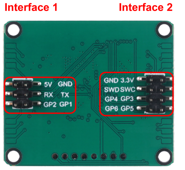 The human presence status output interface. You can use the level of these two pins to determine the current human movement in the environment.