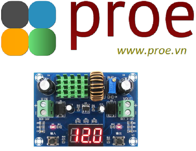 +Điện áp vào: 4-38V (đầu vào không vượt quá 38V, áp vào luôn phải cao hơn áp ra mong muốn 1.5V )
