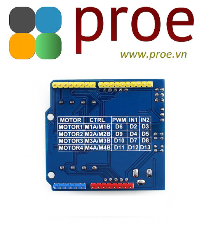 Motor Control Shield is capable of driving 4 DC motors or 2 stepping motors at one time.