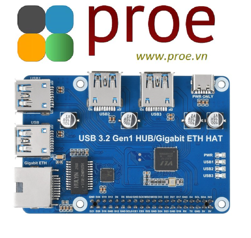 This is a driver-free 3 ports USB 3.2 Gen1 hub HAT for Raspberry Pi, also with a Gigabit Ethernet port, provides more USB/network capability to your Pi, make it easy to connect more USB devices and network devices.